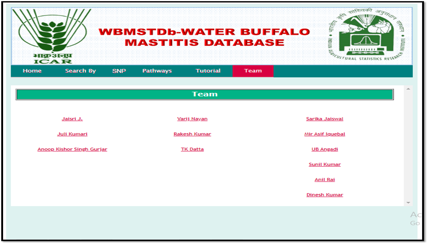 Team: This page contains the member's name who have contributed in development of this database. | ||