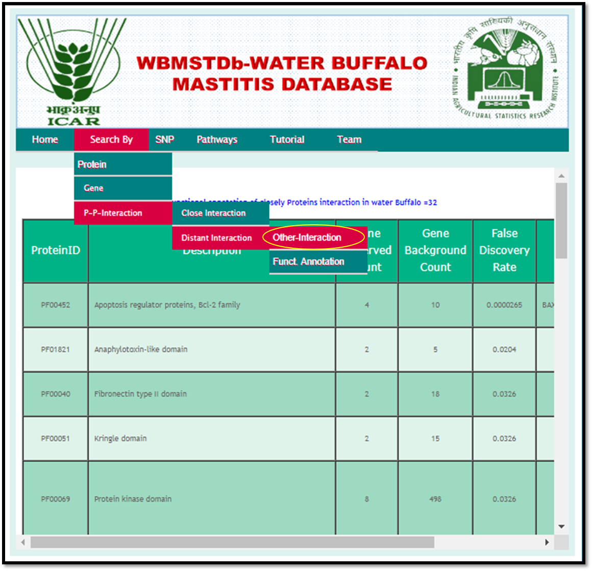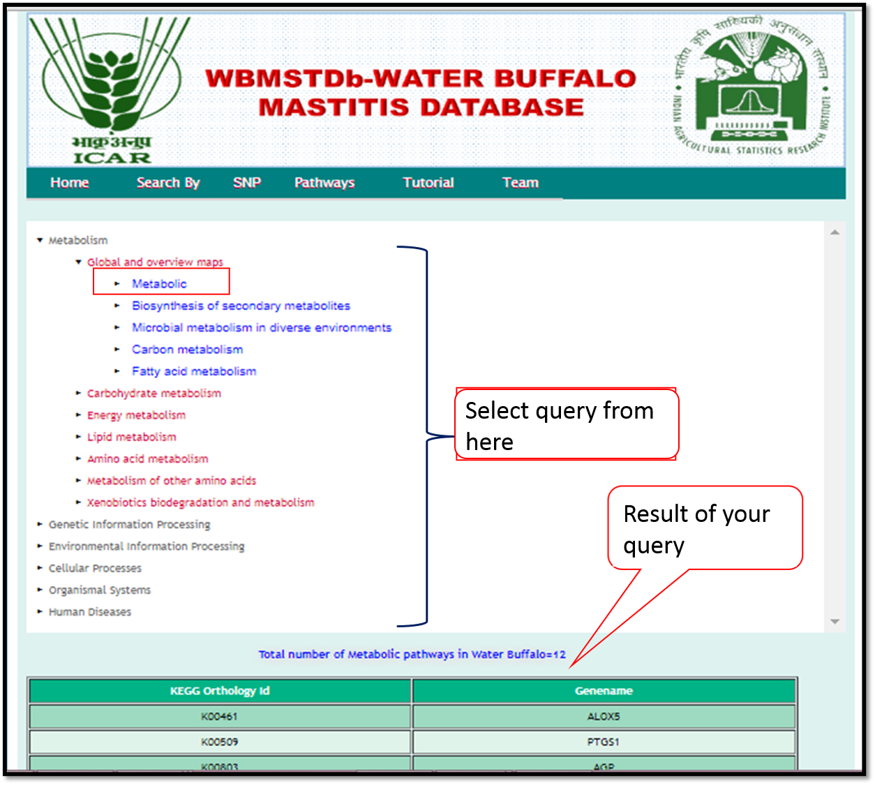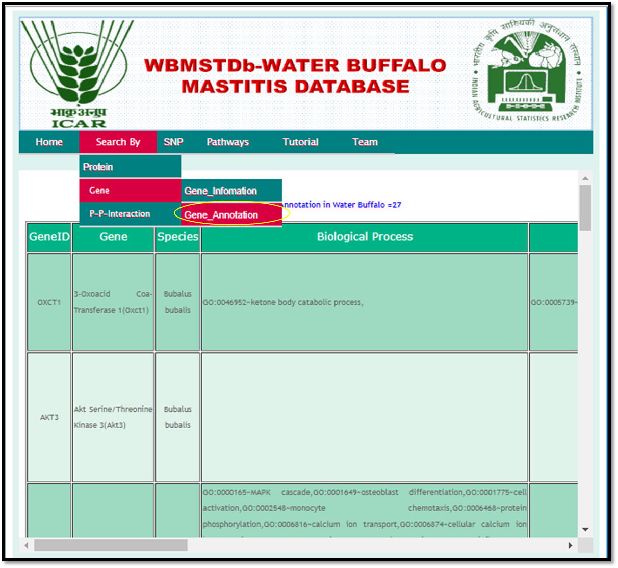 Pathways:Pathways tab provides the information of all pathways involved in water buffalo. | ||