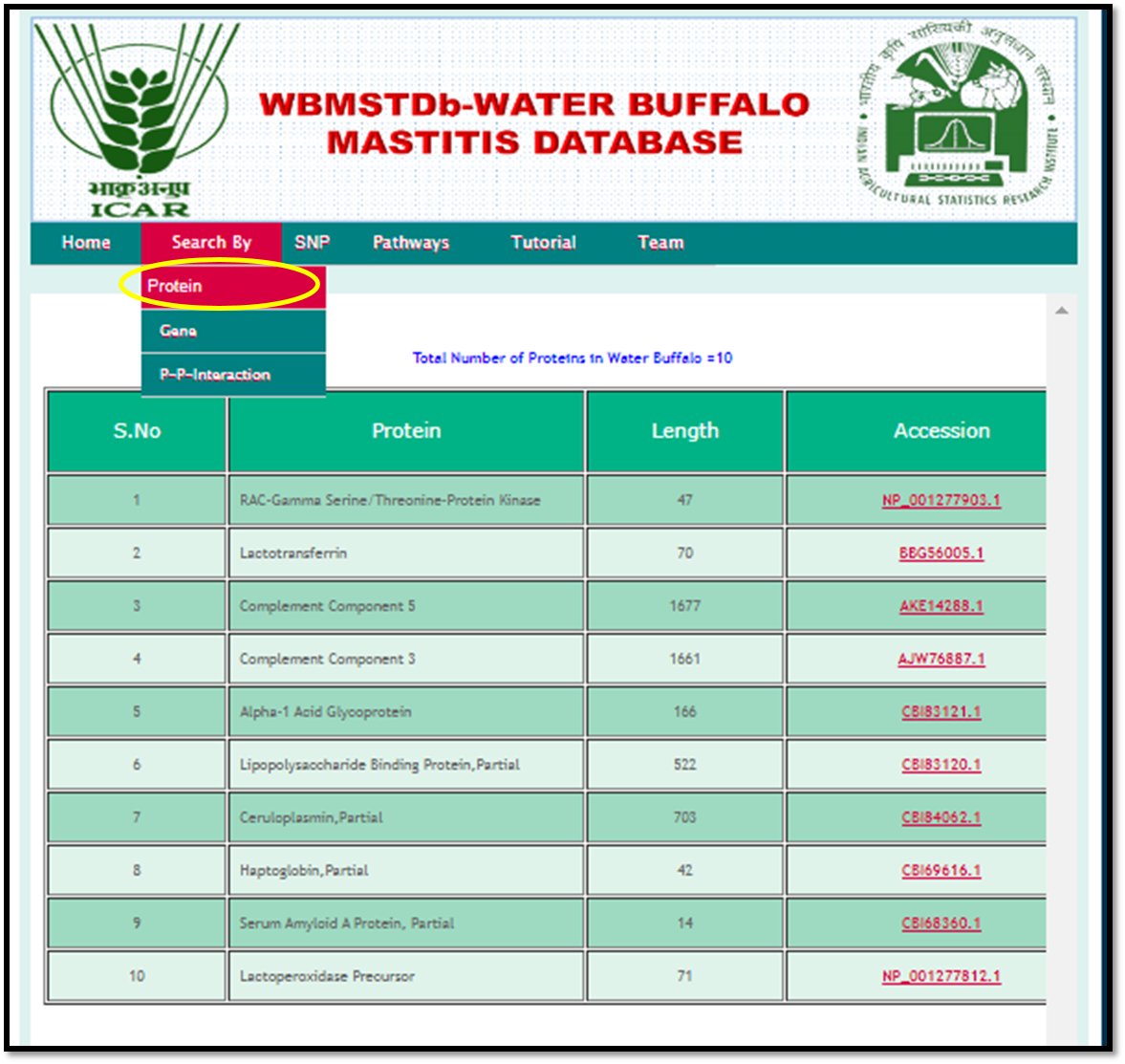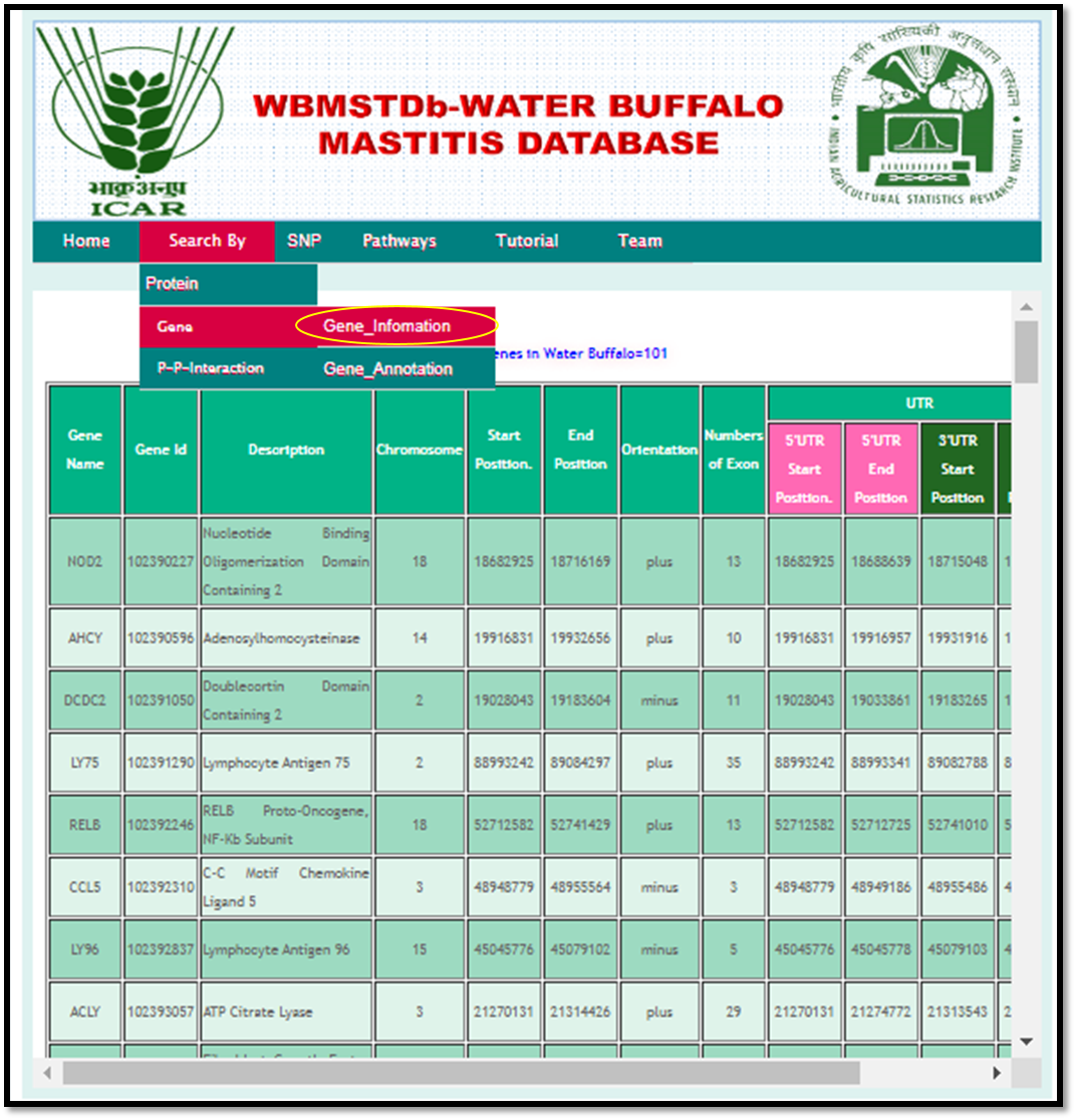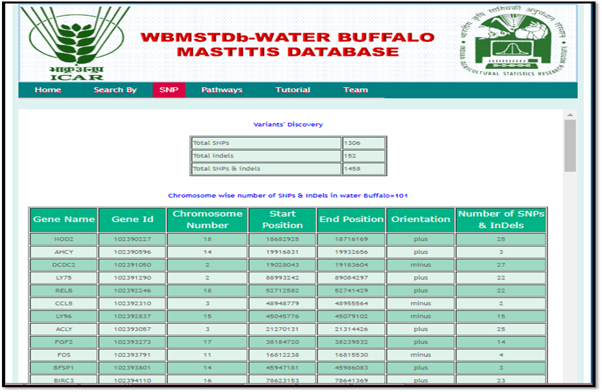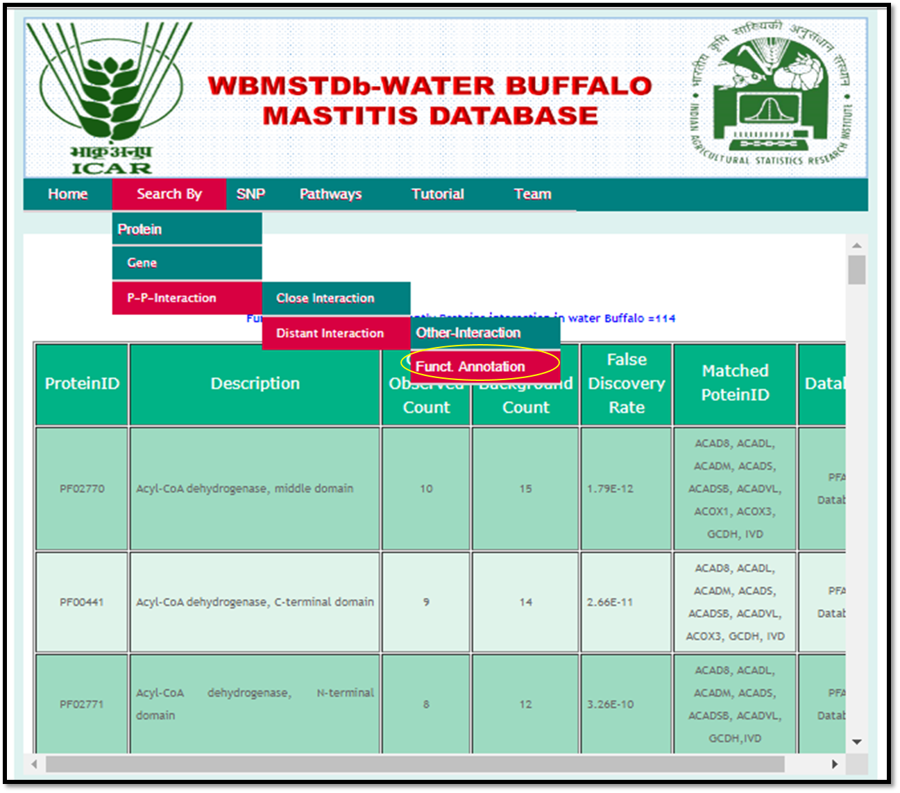 Pathways:Pathways tab provides the information of all pathways involved in water buffalo. | ||