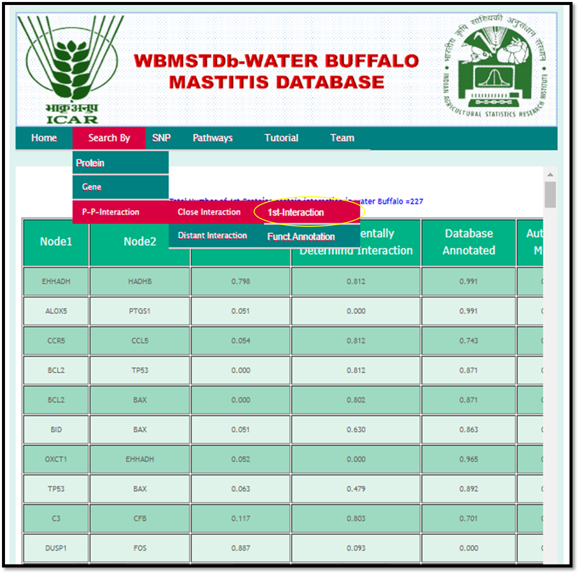 1st_interaction: This page includes closely protein-protein interaction information such as node1, node2, co-expression,experimentally determined interaction,Databse Annotation,auto-text mining and combined score. | ||